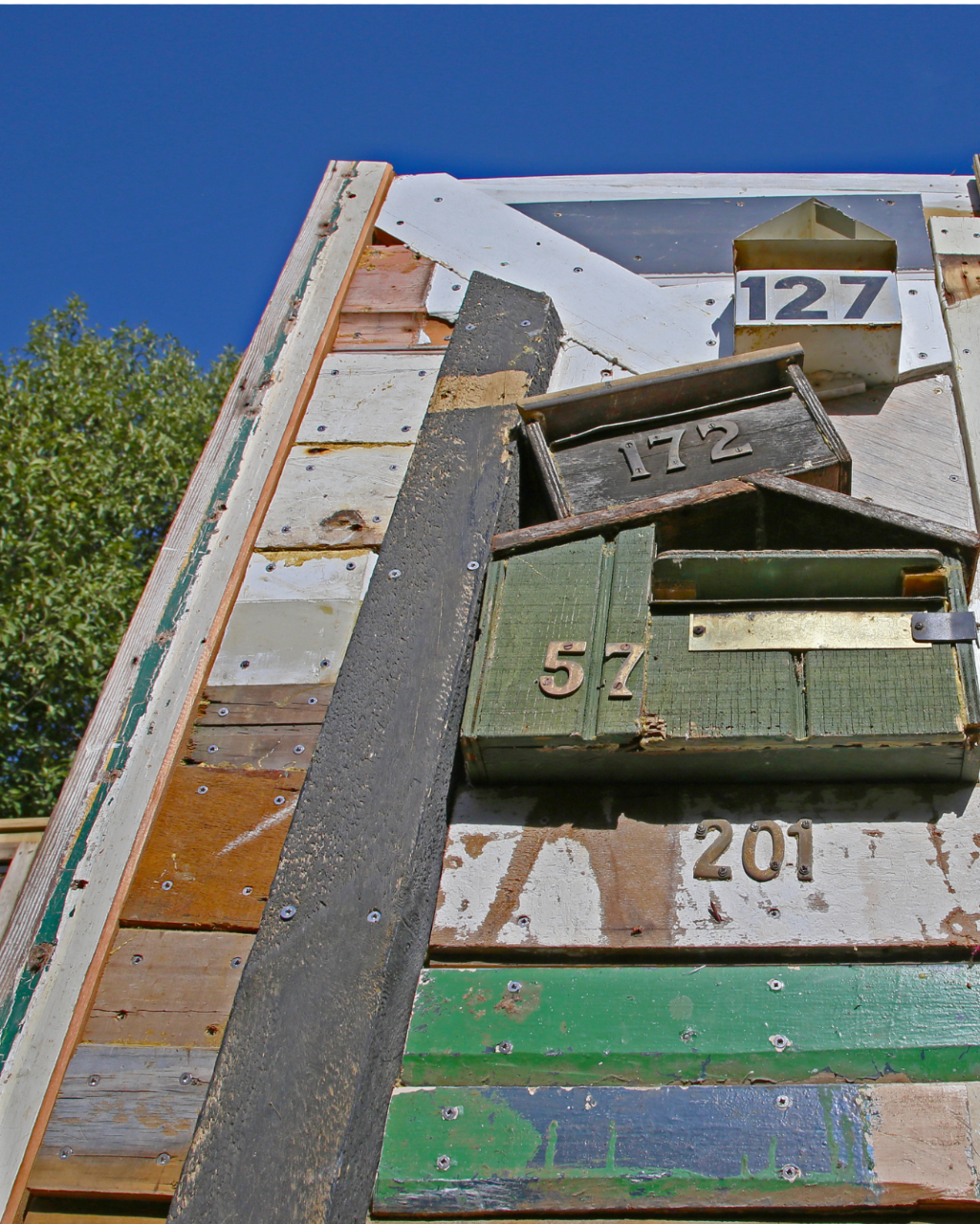The final sculpture design is a product largely of the materials that have been made available by the Trow Group from the deconstruction of the Category 3 Muriwai homes. The final work incorporates community art initiatives from the weeks following the Cyclone, such as the Muriwai ‘Love Letters’ and Mette Hay’s ‘Muriwai Voices’, alongside the mosaics created in the November 2023 community mosaics workshops