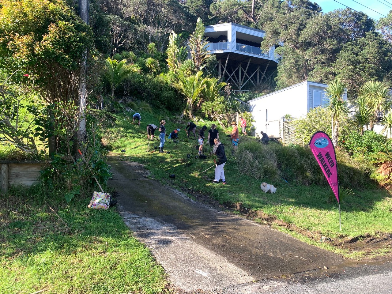 This project is about more than plants. It’s about reclaiming space for the community—quiet corners for connection, remembrance, and regeneration. Thanks to the support of the Muriwai Environmental Trust and the Muriwai Deli (whose kai kept us going strong), this first milestone has been a beautiful reminder of what’s possible when we come together.